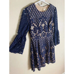 Eliza J Navy & Nude Romantic Lace Bell Sleeve Short Dress Size 2 Cocktail Party