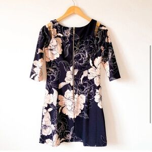 Eliza J Navy Pink Floral Cold Shoulder Dress