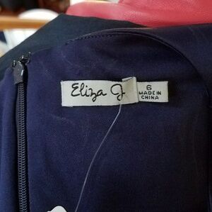 Eliza J Navy Satin Beaded Neckline Dress Size 6