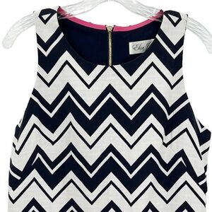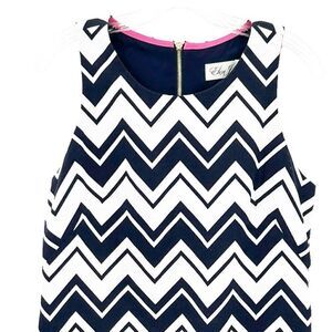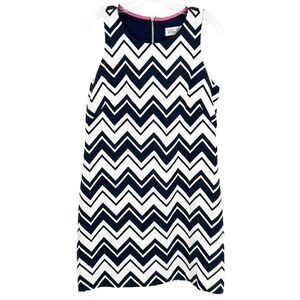 Eliza J Navy White Chevron Gold Zipper Sleeveless Sheath Dress Size 8