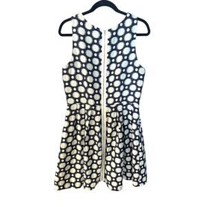 Eliza J Navy White Dot Textured Sleeveless Fit & Flare Dress Size 14