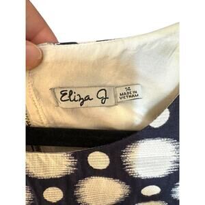 Eliza J dress, polka dot dress, navy and white dress, cotton blend dress, sleeveless fit and flare, textured dress, women’s size 14 dress, party dress, cocktail dress, work event dress, classic chic style.