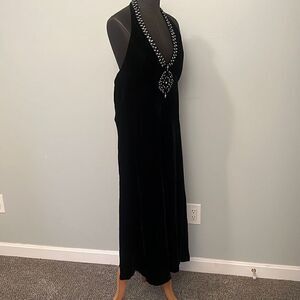 Eliza J New York Women's Black Low Back Embellished Velvet Halter Evening Dress