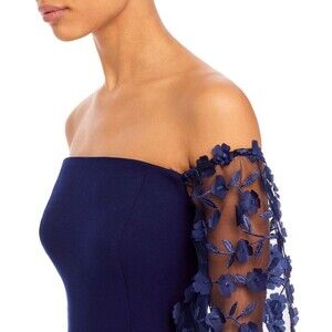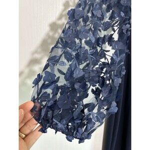 Eliza J Off Shoulder Formal Gown Women's 8 Blue Navy Floral Sleeve Dress New