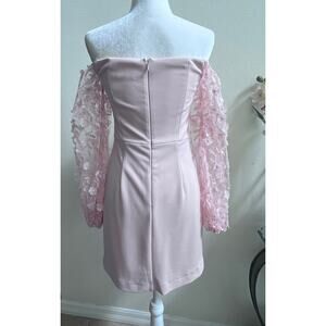 Eliza J Off the Shoulder Pink 3D Floral Sleeve Scuba Crepe Mini Dress 4 Wedding