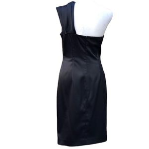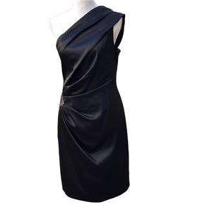 Eliza J One Shoulder Cocktail Dress with jeweled hip accent, in Black. Perfect for a wedding or cocktail party. Worn only once to a wedding and no longer fits. Has some deodorant marks from trying on and will come out when cleaned, In otherwise excellent like new condition.