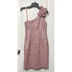 Eliza J One Shoulder Textured Dress With Floral Detail in Dusty Rose Size 8