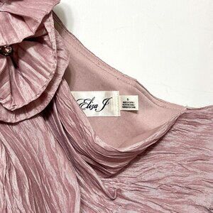 This Eliza J dress features a chic one-shoulder design with a floral embellishment. The ruched pink fabric adds texture and elegance, making it a refined choice for formal and semi-formal settings. Crafted with attention to detail, this dress offers a flattering fit and sophisticated appeal.