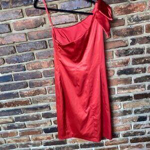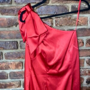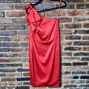 Eliza J One-Shoulder Satin Bow Detail Sheath Mini Dress Women's Size 8