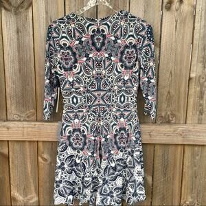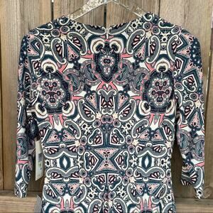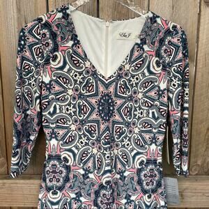 Eliza J Paisley Floral Dress V-Neck 3/4 Sleeve A-Line Jersey Size 4 Petite NWT