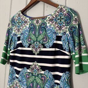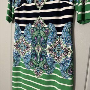 Eliza J Paisley Stripe Print Shift sheath Dress Half Sleeve Knee Length Size 6