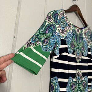 Eliza J Paisley Stripe Print Shift Dress Half Sleeve Knee Length Size 6 Preppy