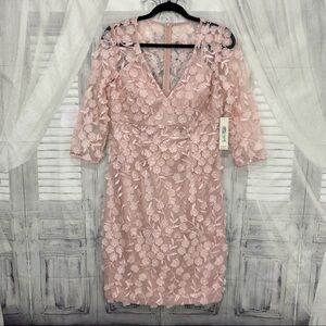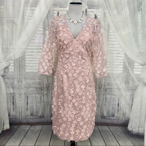Eliza J Pink 3D Embroidered Appliqué Flowers Dress 3/4 Sleeve V Neck Formal NEW