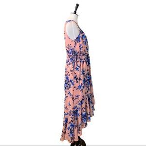 Eliza J Pink Blue Floral Hi Low Flowy Wrap Maxi Dress Sleeveless Women's Size 10