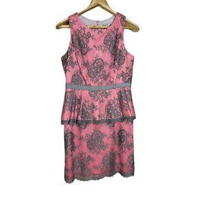 Eliza J Pink Coral & Gray Lace Sleeveless Peplum Hem Dress Size 10