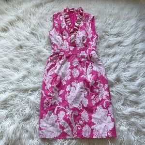 Eliza J Pink Floral V-Neck Ruffle Sheath Dress