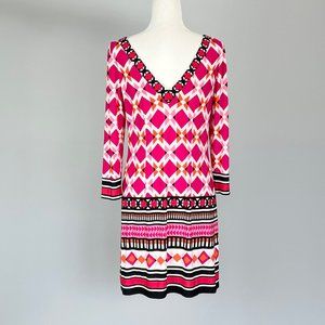 Eliza J Pink Geometric Print Jersey Knit Shift Dress size 4