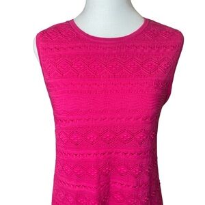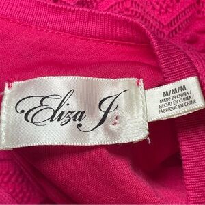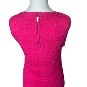 •Style Profile: Eliza J Pink Knit Crochet Lined Shift Dress Medium Office Date Night Barbiecore