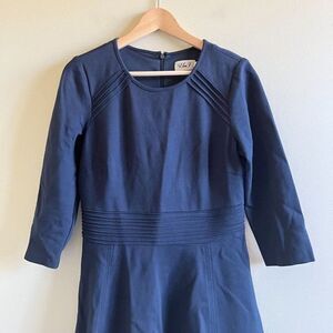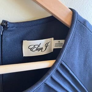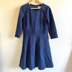 Eliza J Pleated A-Line Dress Fit Flare 3/4 Sleeve Navy Blue Womens Size 10