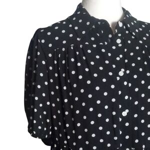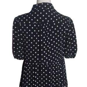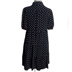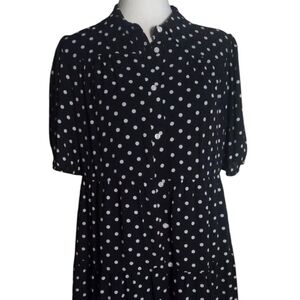 Eliza J Polka Dot Tiered Midi Dress Button Front Flowy Pocket Black White Size 8