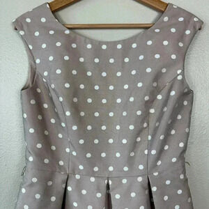 Eliza J Polka Dot Tulip Dress Taupe White Size 8