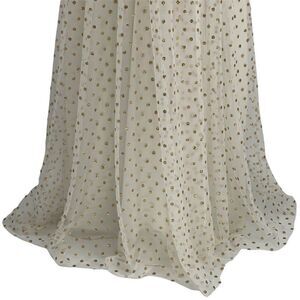 • Glittery gold dots enhance the glam factor of this light & airy gown by Eliza J. It's styled with a one-shoulder silhouette and draped detail to keep the look extra interesting. Hidden side zipper with hook-and-eye closure. Crinoline at hem lining for volume. White with metallic gold-tone polka dot print. excess fabric at shoulder. Full length. Style: EJ0-5404. 100% Polyester.
