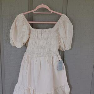 Eliza J Puff Sleeve Smocked Fit And Flare Dress Size 10 Preppy Cotton In Natural