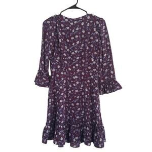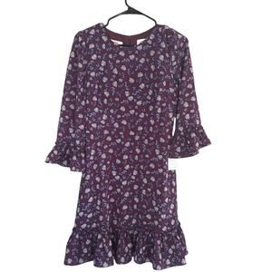 Eliza J Purple Multicolor Floral Jewel Neck A-Line Flounce Dress Women Sz 8