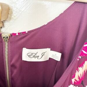 Eliza J Purple Pink Floral Print Bell Sleeve Drop Waist Knee Length Dress Sz 10