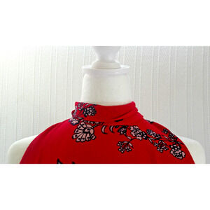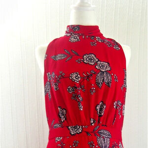 Eliza J Red Floral Print Mini Dress Mock Neck Open Back Bow Feminine Size 10