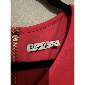 New with out tags Size 14 Solid red with linear accents Slight stretch Retail $188 Elevate your wardrobe with this stunning Eliza J red sheath dress. Perfect for both casual and formal occasions, this dress features a round neckline, short sleeves, and a zip closure. The knee-length dress is made of a combination of 68% polyester, 30% rayon, and 2% spandex, making it both comfortable and stylish. The dress is lined and has stretch features, which makes it perfect for summer, fall, and spring seasons. This dress is ideal for women who want to look their best, whether they are going to a party or a business meeting. Get this Eliza J red sheath dress today and look your best!