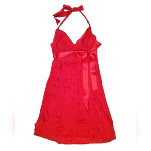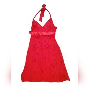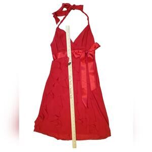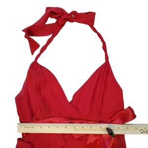 Eliza J Red chiffon halter ruffle mini dress with belt Sz 6