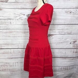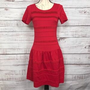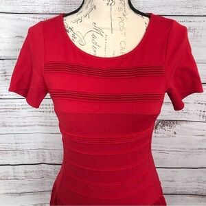 Eliza J Red striped textured size 4 ruffle Dressy midi dress