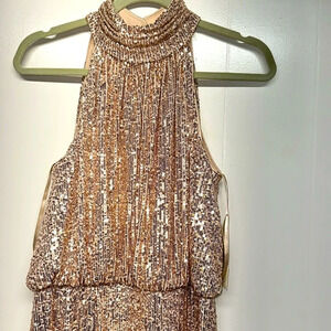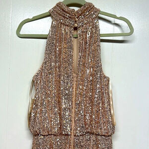 Stunning rose gold sequin dress. Halter neckline. Elegant and chic design. EUC
