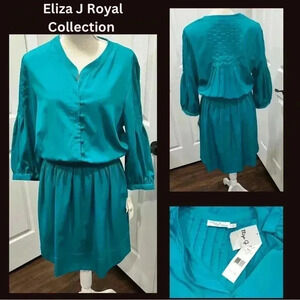 Eliza J Royal Collection dress NWT button front, elastic waistline, green