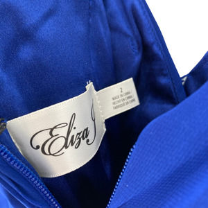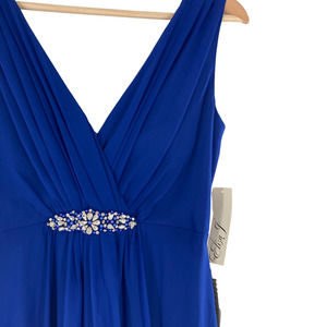 Eliza J Sapphire Blue Chiffon Hi Lo V-Neck Gown Dress Wedding Event. PAL3000