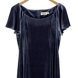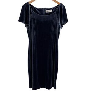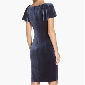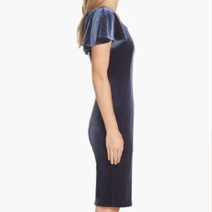 Eliza J Scoop Neck Flutter Sleeve Velvet Sheath Dress Knee Length Women 14 Navy