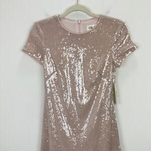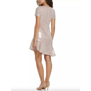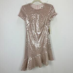Eliza J Sequin Dress Asymmetric Ruffle Hem Blush Pastel Pink Party US 2 NWT.