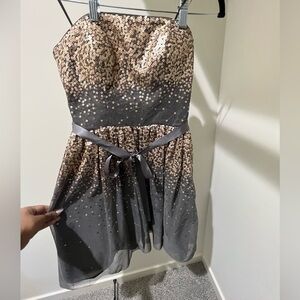 Eliza J Sequin Tulle Dress 4 Missy Grey Metallic Copper Short Strapless Prom