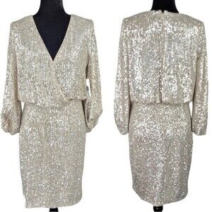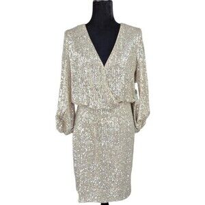 Eliza J Sequined Blouson Gold Sequin Lined dress
