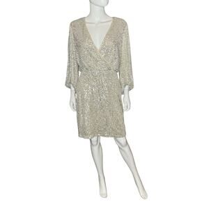 Eliza J Sequined Blouson Shift Dress Silver Women’s Sz 10 NWT