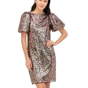Eliza J Sequined Puff-Sleeve Shift Dress – Gold Multi | NWT | Size 4
