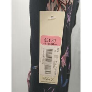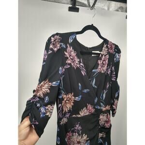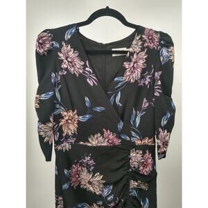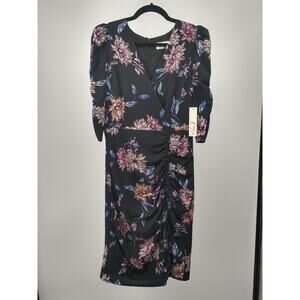 Eliza J Sheath Dress 6 Floral Surplice Ruched Chiffon 3/4 Sleeve Black Pink NWT