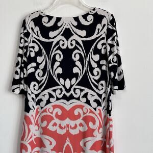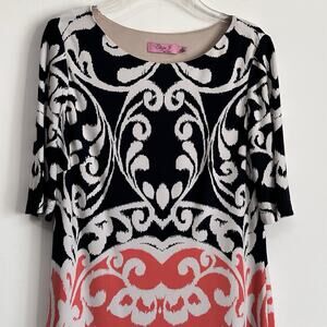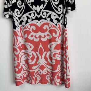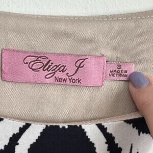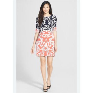 Eliza J Sheath Dress 8 Black White Orange Short Sleeve Stretch Lined Party Work