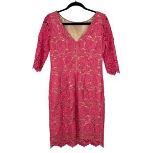 Eliza J Sheath Dress Lace Overlay 3/4 Sleeve Feminine Pink Size 8
