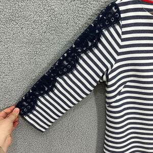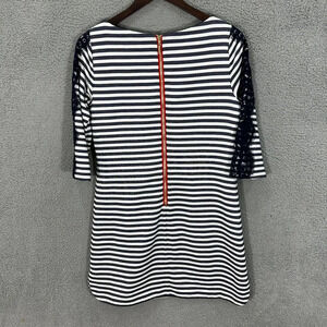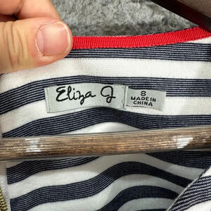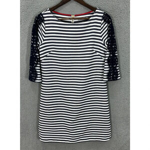 Eliza J dress womens 8 blue white striped shift lace accent exposed zipper