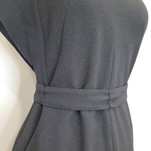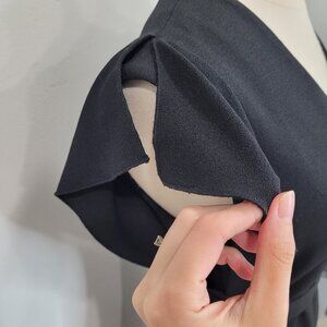 black sheath dress 2 small XS J knee Eliza length flutter sash sleeve short fitted wedding guest formal office business work