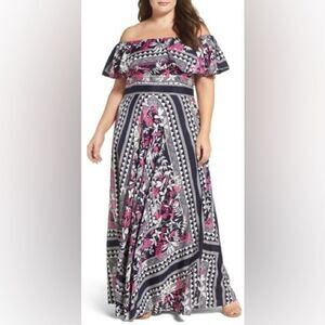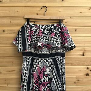 Eliza J Size 14 Floral Geometric Pattern Off The Shoulder Maxi Summer Dress