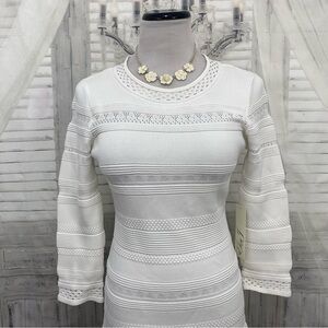 Eliza J Size Small White Pointelle Ruffle Hem Sweater Dress Sleeves Fit & Flare