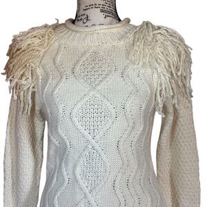 Eliza J Size XS Ivory Fringe Shoulder Cable Knit Sweater Dress Boho Cowgirl
